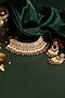 Featuring a 22kt gold plated choker necklace studded with pastel pink jadtar beads, set in silver and copper mix. It is paired with a matching pair of earrings. Perfect for festive occasions, weddings or cultural events, this jewellery is a wardrobe must for those who love to shine effortlessly.