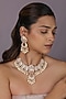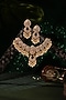 Featuring a 22kt gold plated choker necklace studded with pearl beads, set in silver and copper mix. It is paired with a matching pair of earrings. Perfect for festive occasions, weddings or cultural events, this jewellery is a wardrobe must for those who love to shine effortlessly.