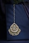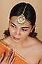Featuring a 22kt gold plated jadau maangtikka studded with pearls, set in silver and copper mix. Perfect for festive occasions, weddings or cultural events, this jewellery is a wardrobe must for those who love to shine effortlessly.
