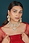 Featuring a 22kt gold plated choker necklace studded with pearls, jadtar and semi-precious stones, set in silver and copper mix. It is paired with a matching pair of earrings. Perfect for festive occasions, weddings or cultural events, this jewellery is a wardrobe must for those who love to shine effortlessly.