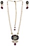 Featuring a gold plated pendant necklace with flower motif, stones and blue meenakari work strung in pearls. It comes along with a matching pair of earrings, copper and silver mix.