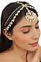 Featuring a 22 Kt gold plated matha patti studded with jadtar stones, pearls, and green moti line, set in silver and copper mix.
