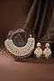 Featuring a 22kt gold plated necklace studded with purple and green jadtar stones, set in silver and copper mix. It is paired with a matching pair of earrings. Perfect for festive occasions, weddings or cultural events, this jewellery is a wardrobe must for those who love to shine effortlessly.