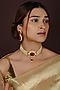 Featuring a 22kt gold plated choker necklace studded with red jadtar stones, set in silver and copper mix. It is paired with a matching pair of earrings. Perfect for festive occasions, weddings or cultural events, this jewellery is a wardrobe must for those who love to shine effortlessly.
