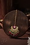 Featuring a 22kt matte gold plated handcrafted jadau maangtikka studded with ruby pink and emerald stones, set in mixed metal. Ideal for festive occasions, weddings, or elevating your elegant evening look.