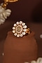 Featuring a 22kt gold plated floral ring studded with sea green jade stones, set in silver and copper mix. Perfect for festive occasions, weddings or cultural events, this jewellery is a wardrobe must for those who love to shine effortlessly.