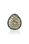 Featuring a 22 Kt gold plated ring studded with jadtar stone, set in silver and copper.