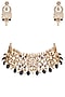 Featuring a gold plated choker necklace embedded with blue and white semi-precious stones. It comes along with matching pearl earrings, copper and silver mix.