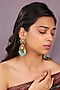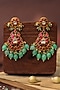 Featuring a pair of 22kt matte gold plated dangler earrings studded with ruby stones and pastel green drops, set in mixed metal. Ideal for festive occasions, weddings, or elevating your elegant evening look.