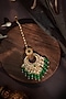 Featuring a 22kt matte gold plated pan-shaped maangtikka studded with emerald beads, set in mixed metal. Ideal for festive occasions, weddings, or elevating your elegant evening look.