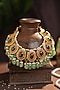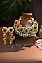 Featuring a 22kt matte gold plated necklace studded with emerald drops and jade hangings, set in mixed metal. It is paired with a matching pair of earrings. Ideal for festive occasions, weddings, or elevating your elegant evening look.