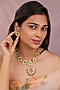 Featuring a 22kt matte gold plated necklace studded with emerald stones, set in mixed metal. It is paired with a matching pair of stud earrings. Ideal for festive occasions, weddings, or elevating your elegant evening look.