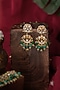 Featuring a pair of 22kt matte gold plated floral dangler earrings studded with green jadtar stones, pearl and glass beads, set in mixed metal. Ideal for festive occasions, weddings, or elevating your elegant evening look.