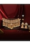 Featuring a 22 kt matte gold plated necklace studded with jadtar kundan polki and pearls, set in mixed metal. It is paired with a matching pair of jhumka earrings. Ideal for festive occasions, weddings, or elevating your elegant evening look.