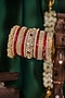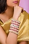 Featuring a set of twenty one 22 kt matte gold plated bangles studded with pearls, set in mixed metal. Ideal for festive occasions, weddings, or elevating your elegant evening look.