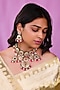 Featuring a 22 kt matte gold plated necklace studded with pearl and ruby pink beads, set in mixed metal. It is paired with a matching pair of earrings. Ideal for festive occasions, weddings, or elevating your elegant evening look.