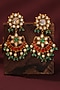 Featuring a pair of 22kt matte gold plated dangler earrings studded with pink and green jadtar stones, pearls and glass beads, set in mixed metal. Ideal for festive occasions, weddings, or elevating your elegant evening look.