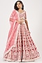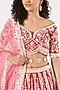 Featuring a scarlet red bridal lehenga in pure raw silk base with pearls, glass beads, and zardosi embroidery. It is paired with a matching blouse, a pure organza scalloped dupatta, and a belt.