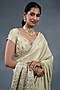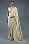Featuring a pistachio green saree in habutai silk base with gota patti work, including zardosi hand and machine embroidery. It is paired with a blouse. Accentuate it with statement earrings and block heels for weddings or sangeet ceremonies.