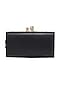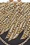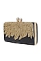 Featuring a black handcrafted clutch in pure leather base with gold rivets, zardosi, and bead embroidery. It has a taffeta underlining, metal alloy frame, and an attachable metal sling inside.