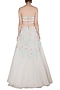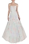 Featuring an ivory tube gown in organza base with pastel coloured bugle beads work and holographic sequin detailing.