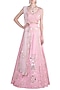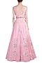 Featuring a pink lehenga skirt in scuba base with acrylic, cutdana, beads, matte stone and 3D embroidery. It is paired with matching blouse and dupatta in net base.
