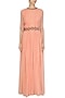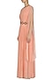 Featuring a sunset peach two side winged sleeves gown in georgette base with embroidered neckline and waistband.