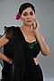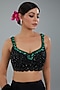 Featuring a black draped saree in chiffon and organza base with ruffle detailing. It is paired with a net jewelled sleeveless blouse. Accentuate with dangler jewellery and heels for a sangeet or engagement ceremony.