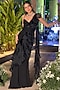 Featuring a black ruffled gown saree in chiffon and organza base. It is paired with an embroidered ruching belt. Accentuate the outfit with dangler earrings and heels for a complete look.