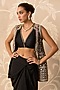 Featuring a black sleeveless jacket in organza base with embroidery. It is paired with a bustier and a silk draped skirt. Style it with statement earrings, bold heels and a metallic clutch for a striking edge, Perfect for a festive occasion, sangeet or cocktail celebrations.