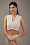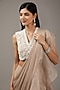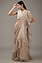 Featuring a champagne ruffled saree in chiffon base with organza frills. It is paired a net embroidered blouse. Accentuate with statement jewellery and heels for festive occasions or sangeet ceremony.
