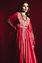 Featuring a deep fuchsia anarkali in chiffon base. It is paired with a matching net dupatta having embroidery.