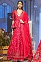 Featuring a deep fuschia lehenga skirt in raw silk base with embroidery. It is paired with matching peplum jacket.