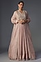 Featuring a dusky pink draped lehenga in chiffon organza base. It is paired with an embroidered net blouse and a chiffon organza cape. Accentuate it with dangler earrings and heels for wedding ceremonies.