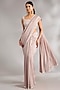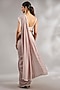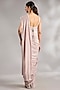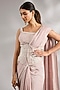 Featuring a dusky pink saree in georgette base with embroidery. It is paired with a jacquard embroidered blouse, a crepe underskirt and a belt. Accentuate it with statement earrings and heels for a wedding or sangeet ceremony.