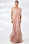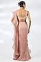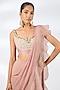 Dusky Rose Chiffon & Organza Ruffled Draped Saree Set