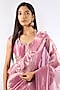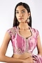 Featuring a fuchsia and gold saree in tissue base. It is paired with an embroidered blouse and a crepe underskirt. Pair it with diamond jewellery, a clutch, and embellished heels for a cocktail, sangeet or engagement ceremony.