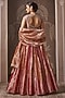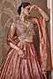 Featuring a fuchsia and orange lehenga in tissue base. It is paired with an embroidered blouse and a dupatta. Accentuate it with antique gold statement jewellery, a coordinated embellished potli and elegant heels for a stylish ensemble, ideal for wedding ceremonies, engagement functions or sangeet nights.