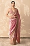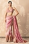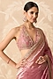 Featuring a fuchsia and orange saree in tissue base. It is paired with a net and tissue embroidered blouse and a crepe underskirt. Style it with kundan polki jewellery, bold heels and a metallic clutch for a striking edge, Perfect for a wedding, sangeet or engagement ceremonies.