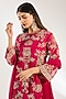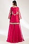 Featuring a fuchsia kurta in organza base with embroidery. It is paired with sharara pants and a dupatta. Accentuate it with chandbalis and embellished juttis for wedding ceremonies, festive poojas or family celebrations.