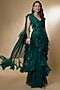 Featuring a green ruffled draped saree in chiffon organza base. It is paired with an organza and net blouse. Add elegance to your wedding or engagement attire with this stunning saree. Pair it with stylish accessories to achieve a lustrous look.