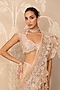 Featuring a gunmetal gold skirt saree in tissue base with embroidery. It is paired with a net embroidered blouse and a pallu. Style it with statement earrings, bold heels and a metallic clutch for a striking edge, Perfect for a wedding, mehendi, engagement parties, or glamorous evening celebrations.