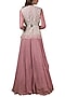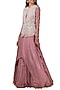 Featuring a lilac draped anarkali in pure chiffon base. It is paired with matching jacket in net and organza base having pearl embroidery and belt.