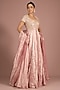 Featuring a lilac gold anarkali in tissue base with embroidery. It is paired with an embroidered dupatta. Style this set with zircon dangler earrings, a clutch and high heels for a festive occasion, sangeet or engagement ceremony.