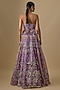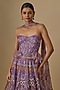 Featuring a lilac lehenga in organza base with embroidery. It is paired with an embroidered corset and a printed ruffled dupatta. Accentuate the designer lehenga with swarovski or pearl, embellished heels and a potli bag for an elegant look, perfect for wedding, sangeet or cocktail ceremonies.