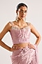 Featuring a lilac draped ruffled saree in tissue base. It is paired with an embroidered corset. Accentuate it with zircon jewellery and embellished heels for a sangeet or wedding ceremony.