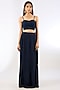 Featuring a navy blue ruffled saree in georgette base with floral embroidery. It is paired with an organza bustier, a peplum jacket and a crepe underskirt. Pair it with diamond jewellery, a clutch, and embellished heels for a cocktail, sangeet or engagement ceremony.