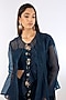 Navy Blue Georgette Floral Embroidered Jacket Ruffled Saree Set