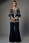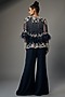Featuring a navy blue peplum in net base with embroidery and an attached cape. It is paired with matching georgette pants and a belt.