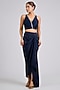 Featuring a navy sleeveless jacket in organza base with embroidery. It is paired with a bustier and a silk draped skirt. Accentuate it with statement earrings and heels for cocktail parties.
